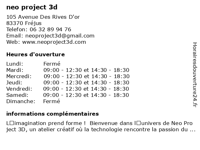 | Samedi | 09:00-12:30 et 14:30-18:30 |