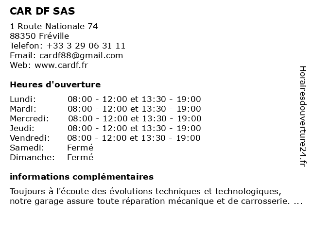 | Lundi | 08:00-12:00 et 13:30-19:00 |