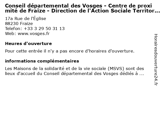 Termes de recherche pour Conseil départemental des Vosges - Centre de proximité de Fraize - Direction de l'Action Sociale Territoriale:de, des, vosges, centre, direction, conseil, départemental, proximité, sociale, territoriale, fraize, l'action |