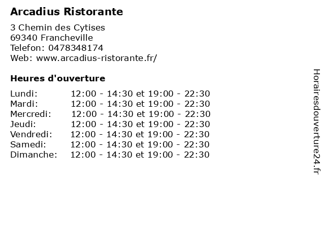 | Dimanche | 12:00-14:30 et 19:00-22:30 |