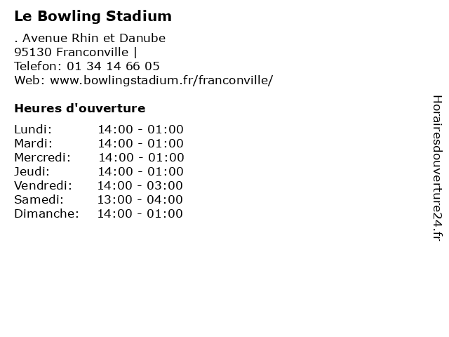 1 Le Bowling Stadium (Distance: 17,89 km) 111 rue Saint Maur, 75011 Paris billards, bowling, jeux videos, le, stadium 2 Bowling Stadium (Distance: 0,00 km) - Avenue Rhin Et Danube, 95130 Franconville bowling, franconville, loisirs, restaurants, sorties, stadium 3 Bowling Stadium (Distance: 5,18 km) 31 Rue Berthie Albrecht, 95210 Saint Gratien billard, bowling, gratien, restaurants, saint, saint gratien, stadium 4 Bowling Stadium (Distance: 10,49 km) 133 Place Nelson Mandela, 92000 Nanterre billards, bowling, jeux videos, le, stadium 5 Bowling de Courbevoie (Distance: 10,99 km) 15 rue Auguste Beau, 92400 Courbevoie billards, bowling, courbevoie, de, jeux videos 6 Bowling du Stadium (Distance: 11,99 km) 3 Fontaines, 95003 Cergy-Pontoise bowling, cafe, chaussures, du, enfants, homme, lingerie, mode femme, restaurant, stadium |