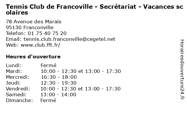 Termes de recherche pour Tennis Club de Francoville - Secrétariat - Vacances scolaires:du, de, horaires, club, vacances, ecole, tennis, secretariat, scolaires, equipes, francoville |