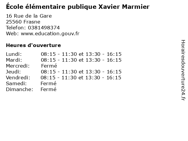 | Mardi | 08:15-11:30 et 13:30-16:15 |