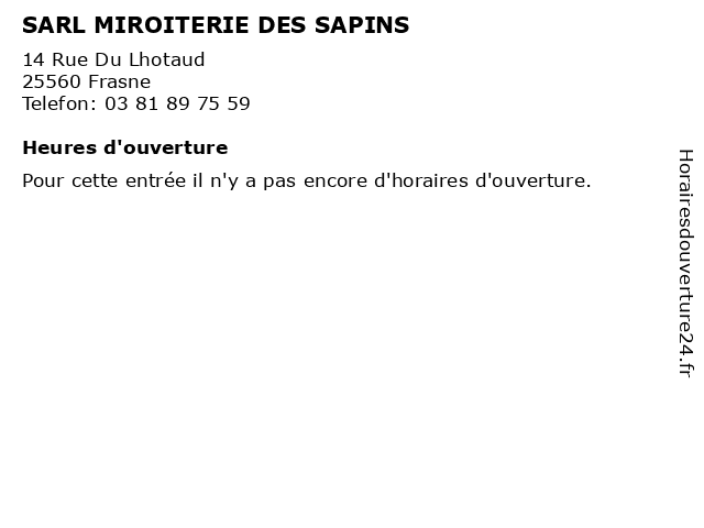 | Appeler SARL MIROITERIE DES SAPINS | |