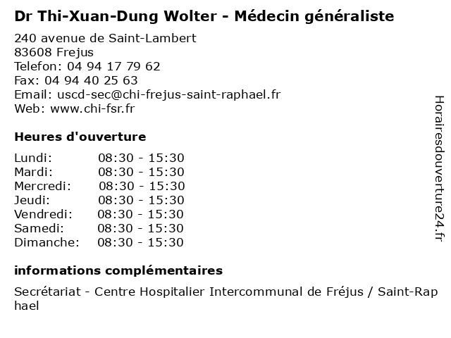 | Lundi | 08:30-15:30 |
