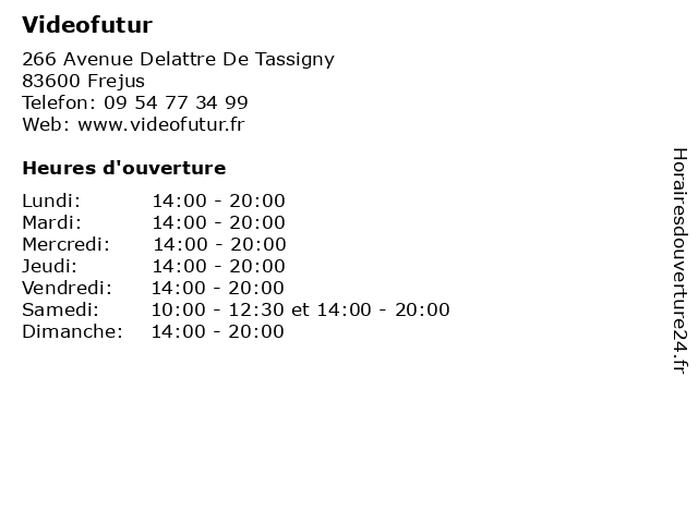 | Samedi | 10:00-12:30 et 14:00-20:00 |