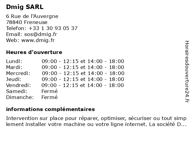 | Lundi | 09:00-12:15 et 14:00-18:00 |