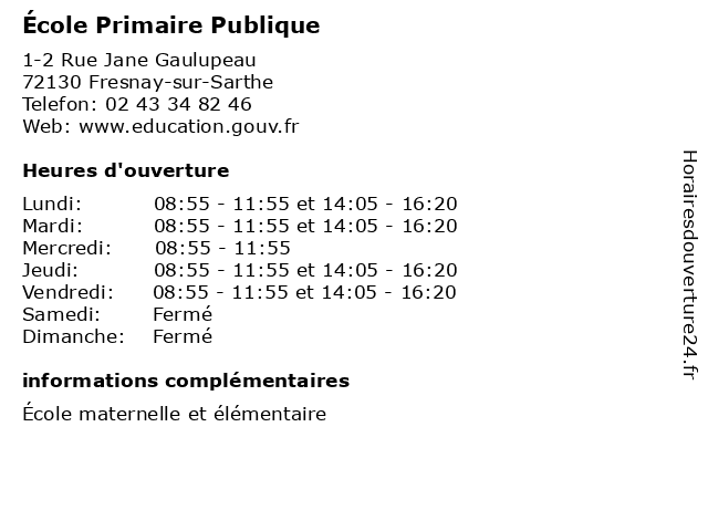 | Samedi | Fermé |