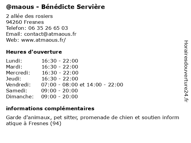| Lundi | 16:30-22:00 |