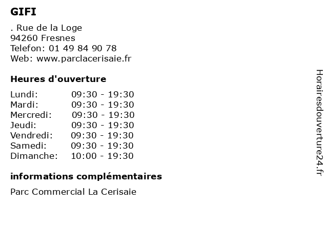 1 Gifi (Distance: 3,16 km) - Rue du Luxembourg, 94320 Thiais accessoires, décoration, fournitures, gifi, matériel, meubles, éléctroménager 2 Gifi (Distance: 7,89 km) - Avenue du Maréchal de Lattre de Tassigny, 01200 Chatillon de l'artisanat, décoration, en passant par l' art de la table, gifi, le jardinage et aussi des meubles, linge de maison 4 GiFi (Distance: 8,17 km) - Rue du Baron de Niviere, 91140 Villebon-sur-Yvette ameublement, déco, décoration, gifi, intérieur, maison, meubles 5 Gifi (Distance: 8,18 km) 117 Rue Alesia Metro, 75014 Paris art de la table, gifi, jardin, jouets, magasin de décoration 6 GiFi (Distance: 10,99 km) 106 Boulevard Diderot, 75012 Paris ameublement, déco, décoration, gifi, intérieur, maison, meubles |