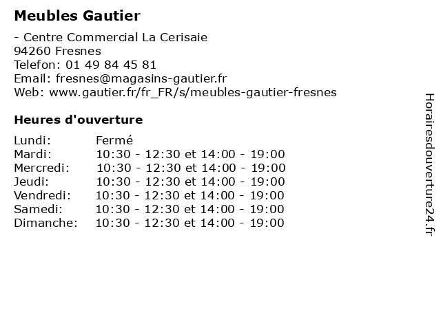 | Mardi | 10:30-12:30 et 14:00-19:00 |