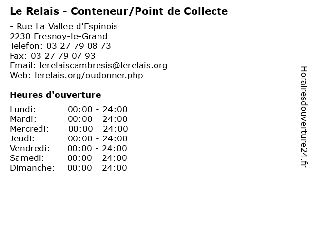 Termes de recherche pour Le Relais - Conteneur/Point de Collecte:relais, le, de, vêtements, point, collecte, dons, conteneur/point |