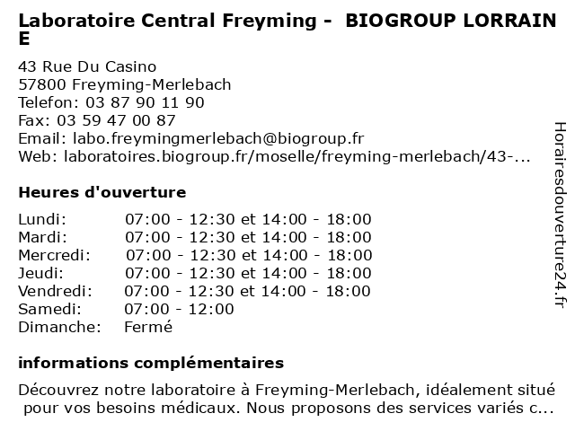 Termes de recherche pour Laboratoire Central Freyming - BIOGROUP LORRAINE:freyming, laboratoire, lorraine, central, biogroup, dépistages, laboratoire de diagnostic |