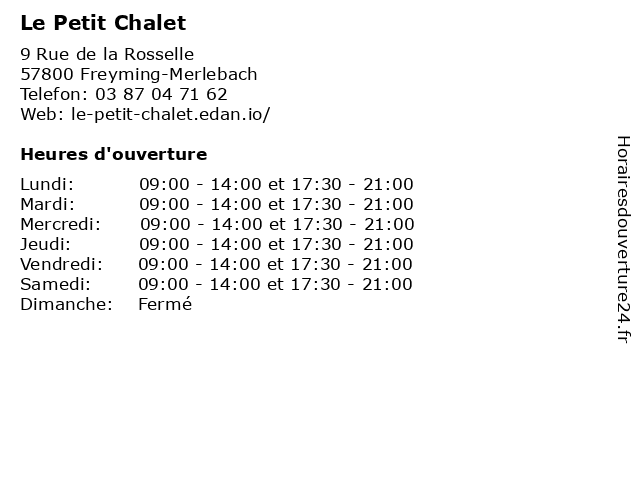 Lundi | 09:00-14:00 et 17:30-21:00 |