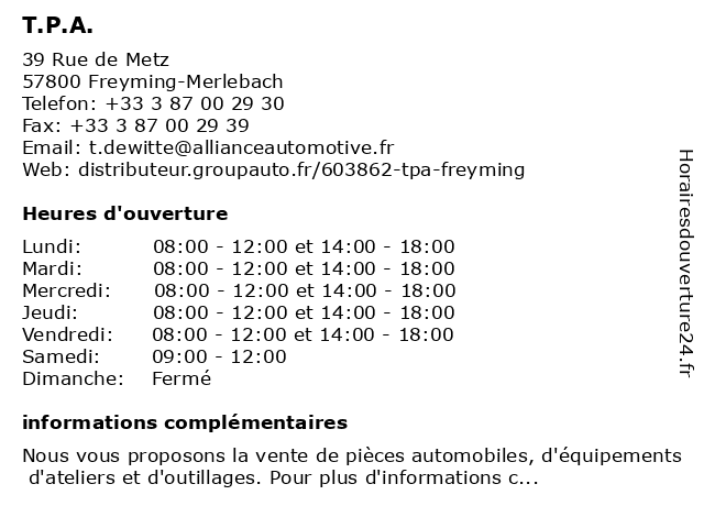 | Lundi | 08:00-12:00 et 14:00-18:00 |