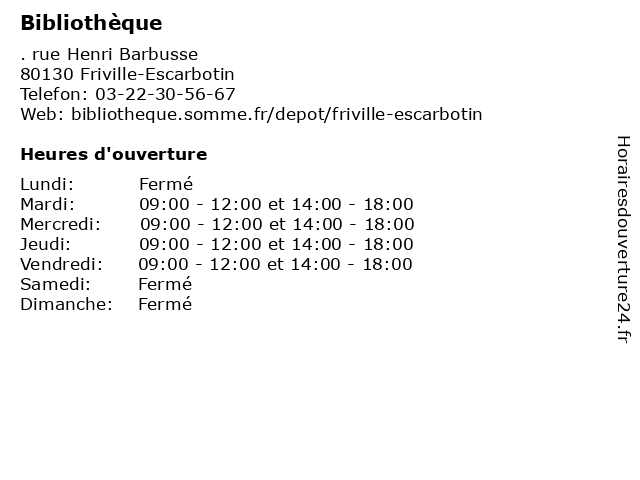 1 Bibliothèque (Distance: 3,30 km) . impasse Pierre Blondin, 80230 Vaudricourt bibliothèque, cd audio, cd.rom, livres, revues 2 Bibliothèque (Distance: 3,44 km) . rue Tournière, 80130 Bethencourt/Mer bibliothèque, cd audio, cd.rom, livres, revues 3 Bibliothèque (Distance: 3,55 km) 215 Grande rue, 80130 Bourseville bibliothèque, cd audio, cd.rom, livres, revues 4 Bibliothèque (Distance: 5,57 km) 3 place de la Mairie, 80570 DARGNIES bibliothèque, cd audio, cd.rom, livres, revues 5 Bibliothèque (Distance: 6,37 km) 4 place Augustin, 80820 Arrest bibliothèque, cd audio, cd.rom, livres, revues 6 Bibliothèque (Distance: 6,77 km) . place Paulin Carette, 80570 Embreville bibliothèque, cd audio, cd.rom, livres, revues |