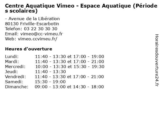 | 1 Centre Aquatique Vimeo - Espace Aquatique (Vacances Toussaint-Hiver-Printemps) (Distance: 0,00 km) - Avenue de la Libération, 80130 Friville-Escarbotin aqua, aquatique, centre, espace, hiver, piscine, printemps, toussaint, vacances, vimeo 2 Centre Aquatique Vimeo - Espace Aquatique (du 07 août au 03 septembre) (Distance: 0,00 km) - Avenue de la Libération, 80130 Friville-Escarbotin 03, 07, août, aqua, aquatique, au, centre, du, espace, piscine, septembre, vimeo 3 Centre Aquatique Vimeo - Espace Aquatique (du 10 juillet au 06 août) (Distance: 0,00 km) - Avenue de la Libération, 80130 Friville-Escarbotin 06, 10, août, aqua, aquatique, au, centre, du, espace, juillet, piscine, vimeo 4 E.Leclerc Espace Culturel (Distance: 13,13 km) - chemin départemental 925, 76260 Etalondes culturel, e.leclerc, espace, fournisseur de matériel audiovisuel, librairies, magasin de jeux vidéo, magasin de musique, matériel de photographie, matériel vidéo, services et matériel vidéo 5 E.Leclerc Espace culturel (Distance: 13,13 km) . chemin départemental 925, 76260 Etalondes accessoire, culturel, e.leclerc, espace, hi-tech, livres, multimedia 6 Abbeville Espace Auto (Distance: 19,53 km) 7 Boulevard Voltaire, 80100 Abbeville abbeville, auto, espace |