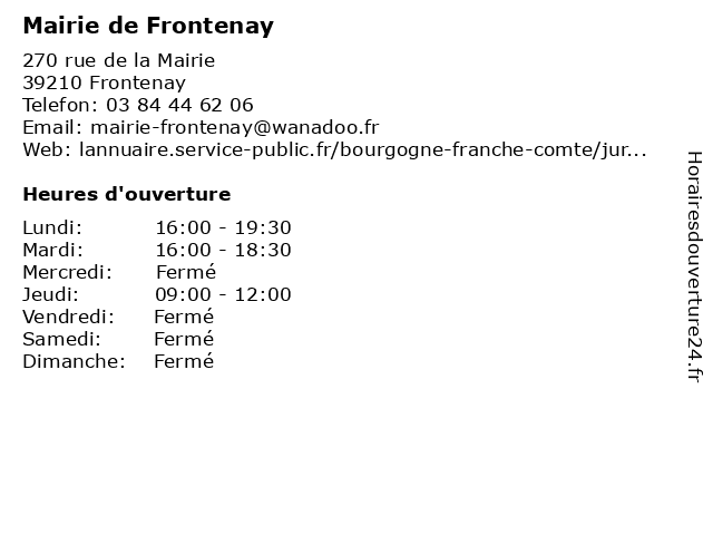 Termes de recherche pour Mairie de Frontenay:de, administration, mairie, frontenay, service public |