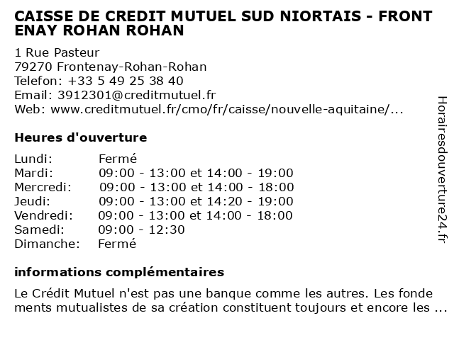 Termes de recherche pour CAISSE DE CREDIT MUTUEL SUD NIORTAIS - FRONTENAY ROHAN ROHAN:de, crédit, sud, mutuel, caisse, niortais, rohan, frontenay |
