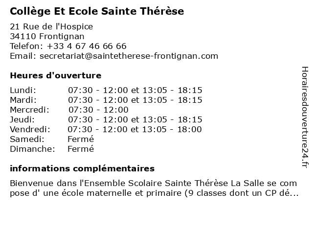 | Lundi | 07:30-12:00 et 13:05-18:15 |