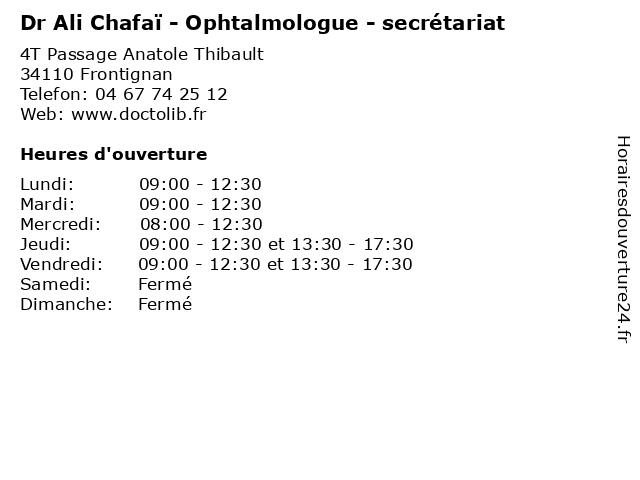 Termes de recherche pour Dr Ali Chafaï - Ophtalmologue - secrétariat:med, medecine, ali, secretariat, traitement, docteur, médecin, consultation, dr, ophtalmologue, chafai |
