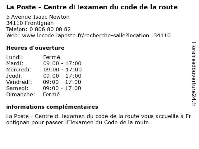 Termes de recherche pour La Poste - Centre d’examen du code de la route:poste, la, du, de, route, centre, code, d’examen, centre d'évaluation scolaire, école technique |