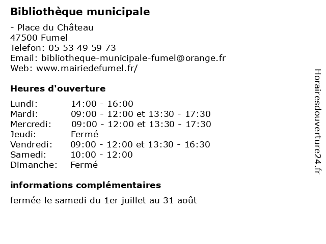 | Mardi | 09:00-12:00 et 13:30-17:30 |