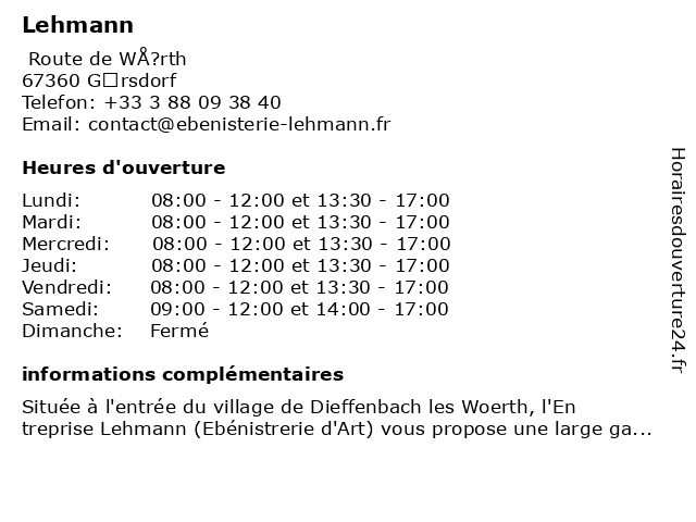| Lundi | 08:00-12:00 et 13:30-17:00 |