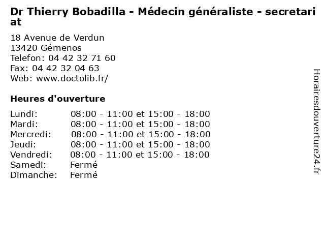 Termes de recherche pour Dr Thierry Bobadilla - Médecin généraliste - secretariat:thierry, medecine, medical, secretariat, traitement, généraliste, médecin, dr, pharmaceutique, bobadilla |
