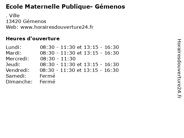 Lundi | 08:30-11:30 et 13:15-16:30 |
