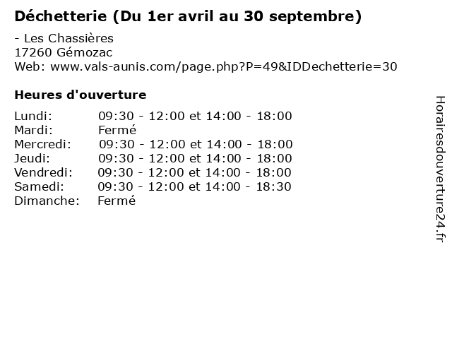 | Samedi | 09:30-12:00 et 14:00-18:30 |