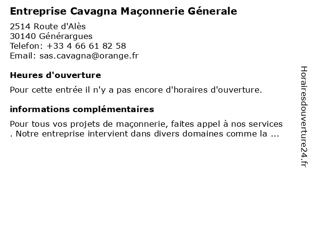 | Appeler Entreprise Cavagna Maçonnerie Génerale | |