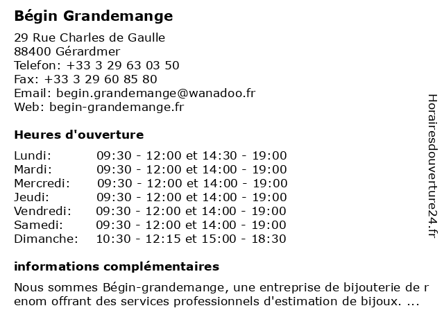 | Mercredi | 09:30-12:00 et 14:00-19:00 |