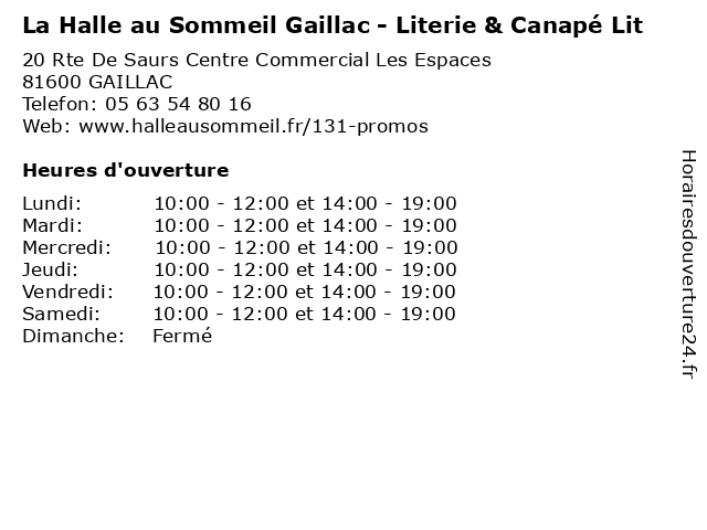 | Mardi | 10:00-12:00 et 14:00-19:00 |
