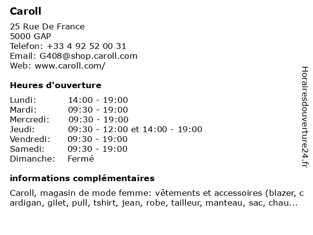 | Mercredi | 09:30-19:00 |