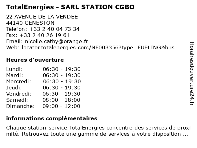 Termes de recherche pour TotalEnergies - SARL STATION CGBO:sarl, station, total, gas station, station service, tankstelle, cgbo, totalenergies |
