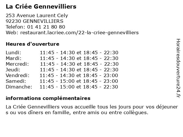 | Samedi | 11:45-15:00 et 18:45-23:00 |