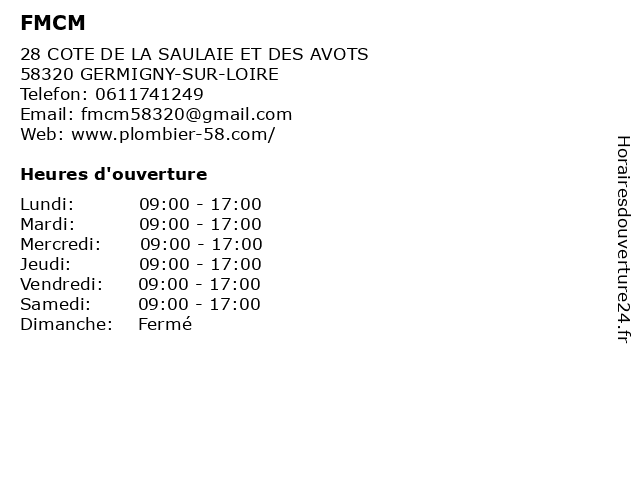 | Lundi | 09:00-17:00 |
