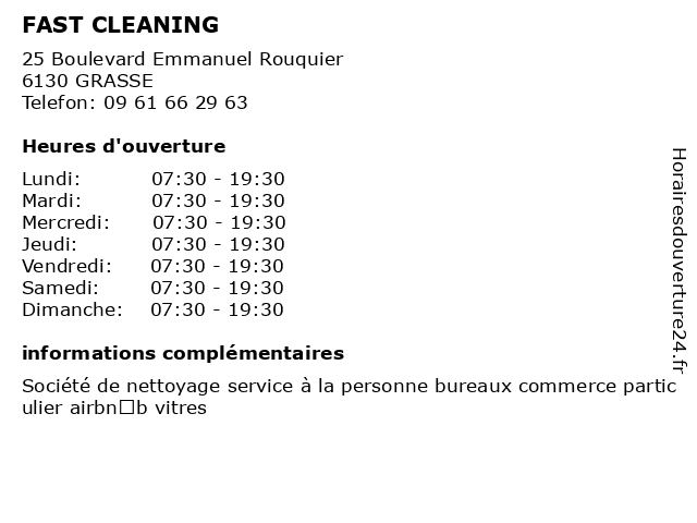 | Dimanche | 07:30-19:30 |