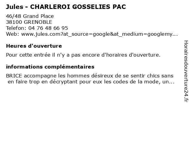 | Appeler Jules - CHARLEROI GOSSELIES PAC | |