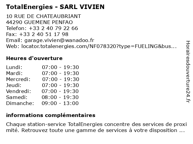 Termes de recherche pour TotalEnergies - SARL VIVIEN:sarl, vivien, total, gas station, station service, tankstelle, totalenergies |