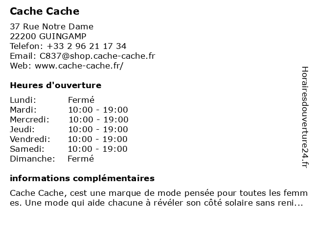 Horaires d'ouverture |