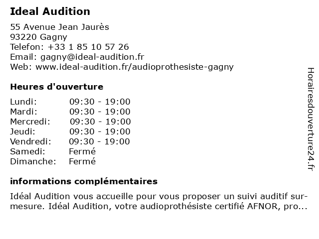 4 Ideal Audition (Distance: 7,75 km) 46 Avenue Roger Salengro, 94500 Champigny-sur-Marne audition, ideal 5 Ideal Audition (Distance: 10,16 km) 22 Rue Baratte Cholet, 94100 Saint-Maur-des-Fossés audition, ideal 6 |