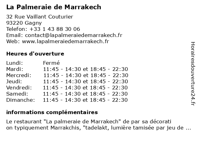 | Mardi | 11:45-14:30 et 18:45-22:30 |