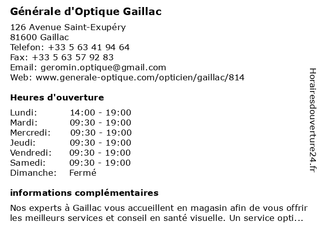 Termes de recherche pour Générale d'Optique Gaillac:gaillac, générale, d'optique |