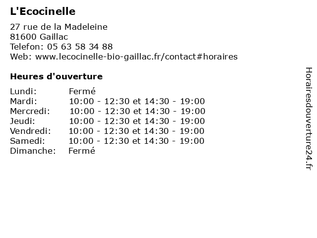 | Mercredi | 10:00-12:30 et 14:30-19:00 |