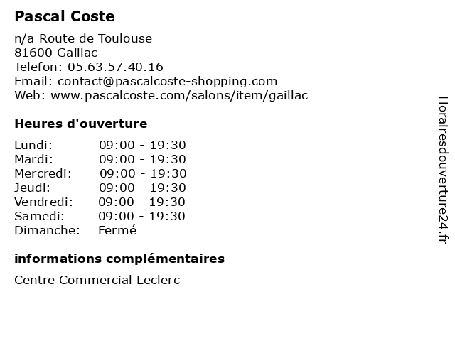 1 Pascal Coste (Distance: 17,21 km) . ZAC De Fonlabour, 81000 Albi beauté, cheveux, coiffeur, coiffure, coste, coupe, pascal, salon 3 Maître Pascal Labrousse - Avocat (Distance: 15,88 km) 18 Rue Nicolas Copernic, 81000 Albi avocat, avocats, cabinet, conseils, contentieux, juridique, justice, labrousse, litiges, maître, pascal, services 4 Dr Pascal Cariven - Chirurgien orthopédiste (Distance: 19,88 km) 22 Boulevard Général Sibille, 81000 Albi cariven, chirurgien, consultation, docteur, dr, med, médecin, orthopédiste, pascal, traitement 5 Pascal Coste Homme (Distance: 44,03 km) 445 route du Nord, 82000 Montauban aussonne, barbier, beauté, coste, homme, hommes, pascal, salon, shop, style 6 Clinique Vétérinaire de Coste Grande (Distance: 48,26 km) 163 chemin de Côte Vieille, 82170 Grisolles chat, chien, clinique, coste, de, grande, nac, vétérinaire |