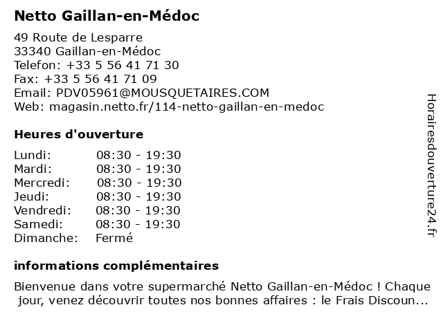 Termes de recherche pour Netto Gaillan-en-Médoc:en, netto, medoc, gaillan |