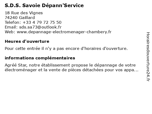 | Appeler S.D.S. Savoie Dépann'Service | |