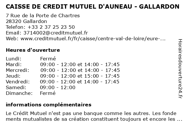 Termes de recherche pour CAISSE DE CREDIT MUTUEL D'AUNEAU - GALLARDON:de, crédit, mutuel, caisse, d'auneau, gallardon |